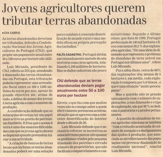 Título: “Jovens Agricultores querem tributar terras abandonadas”